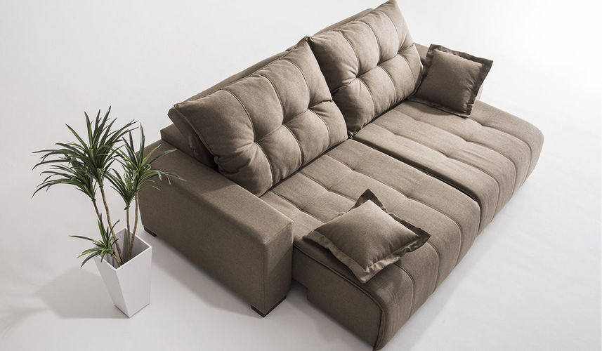 - Assentos e chaise retráteis com corrediças tubulares, espuma D-28 Soft e molas ensacadas. Pillow com espuma D-28 Soft revestido por manta siliconizada.
