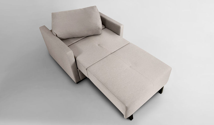 - Encosto com almofadas soltas em fibra siliconizada.